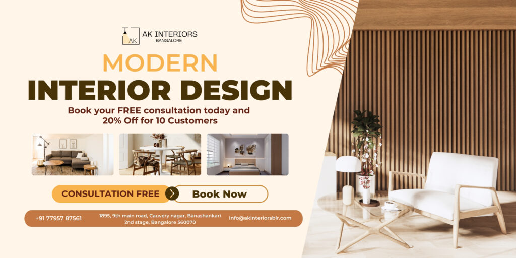 Book a consultation today with India’s Most Trusted Home Interiors Brand — Ak Interiors Bangalore — and start designing your perfect home with our experts.